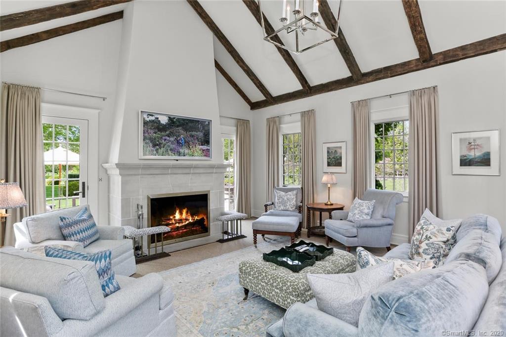 Iconic 5BR home overlooking the green in Historic lower Greenfield Hill. Perfect year round retreat, cited on 2.5 beautifully manicured level acres with a stunning main home, gunite saltwater pool & spa, spacious patio with outdoor fireplace, updated barn with legal apartment and so much more. Minutes from downtown Fairfield, Westport, trains, shops and 5 beaches, this is the perfect place to live, relax and entertain. The fully renovated home has a family-friendly flow offering both open and private spaces. With 6000+ sq ft and a massive finished lower level, there is a nook for everyone. Bright and spacious. High ceilings. Home gym. Wine cellar. 2-story family room/playroom. The pulse of the home is the gourmet chefs kitchen with a large eat-in dining area with French doors leading out to the patio and yard. Two home offices offer great options. Enjoy the rare treat of having 5 bedrooms all with their own full baths. Unwind in your spacious master suite with a working fireplace and spa-like master bath. The home has additional 4 fireplaces and a spacious mud room. A bright and happy bonus/playroom on two floors. In the finished barn there is a detached apt with bedroom, kitchen, laundry, full bath and living room. The 1500 sq ft finished bonus room above the barn with half bath offers space for play, entertaining, etc. 3 car attached garage PLUS 8 car barn bays - all climate controlled. Lots of storage incl a large attic. This is a WOW home for sure!
