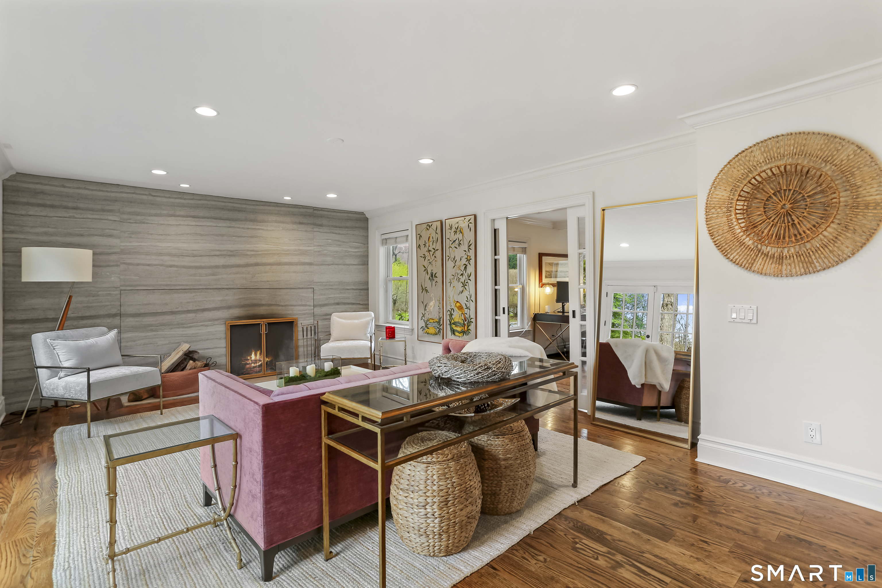 Exceptional rental opportunity! Conveniently situated in scenic Southport. WALK TO GREENFIELD HILL CENTER with market, specialty foods, spirit shop, restaurants & boutiques. Beautiful, scenic property with 2 stone bridges, meandering brook, gorgeous lawn, firepit & lighting accents (all maintained by landlord). Gourmet Kitchen with custom cabinetry, granite counters & island, stainless appliances, Bosch DW and 5 burner gas range. Open floor plan is ideal for entertaining. Sun-filled Family Room with sleek new fireplace & French doors that open to bluestone patio & Belgian block walkways. Primary bedroom with balcony overlooking parklike grounds. Primary bath with large tub, separate shower, double sinks and radiant heated marble floor is the perfect spa like retreat. Custom millwork throughout, wide plank HW floors, mud room and oversized 2 car garage with ample overhead storage space. Newer gas furnace & A/C for utility efficiency. A truly special, well-loved home, meticulously maintained and move-in ready! Minutes beach, tennis & playing fields. Quick 2.5 miles to train & vibrant Fairfield town center. Waterfront community 50 miles from NYC offering coastal charm, historic preservation, restaurants, shops & theater. Guest cottage not included in rental.