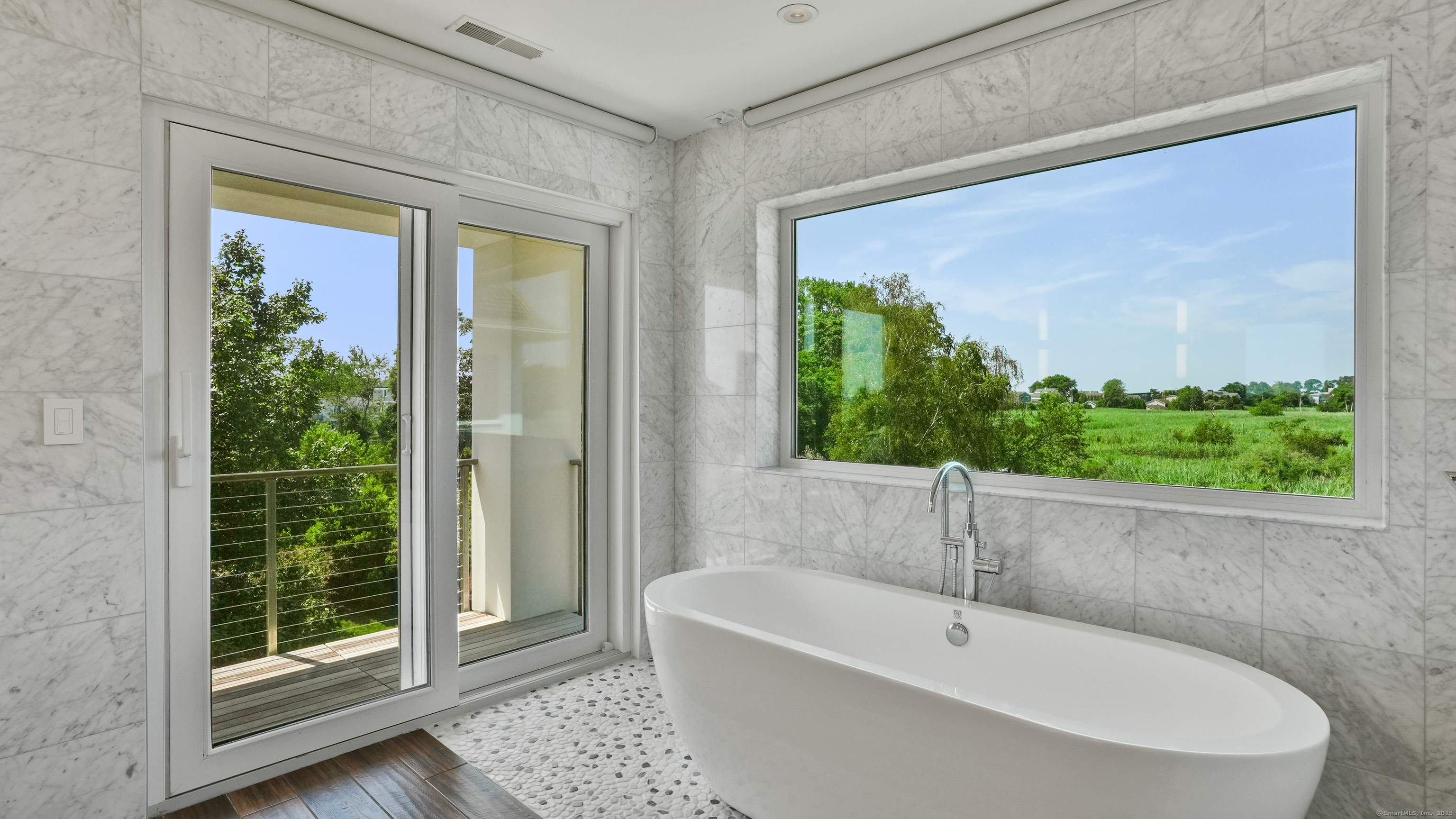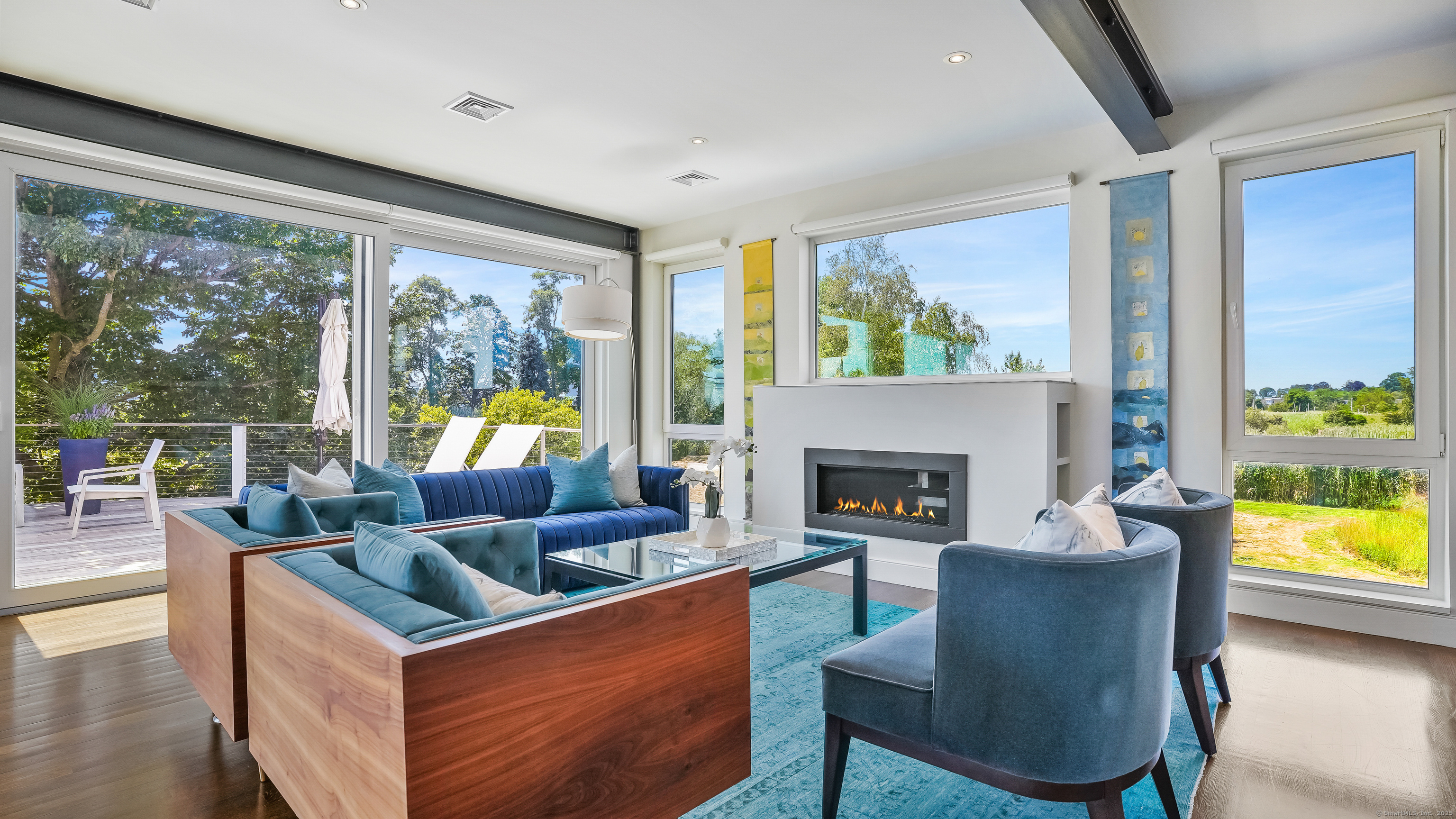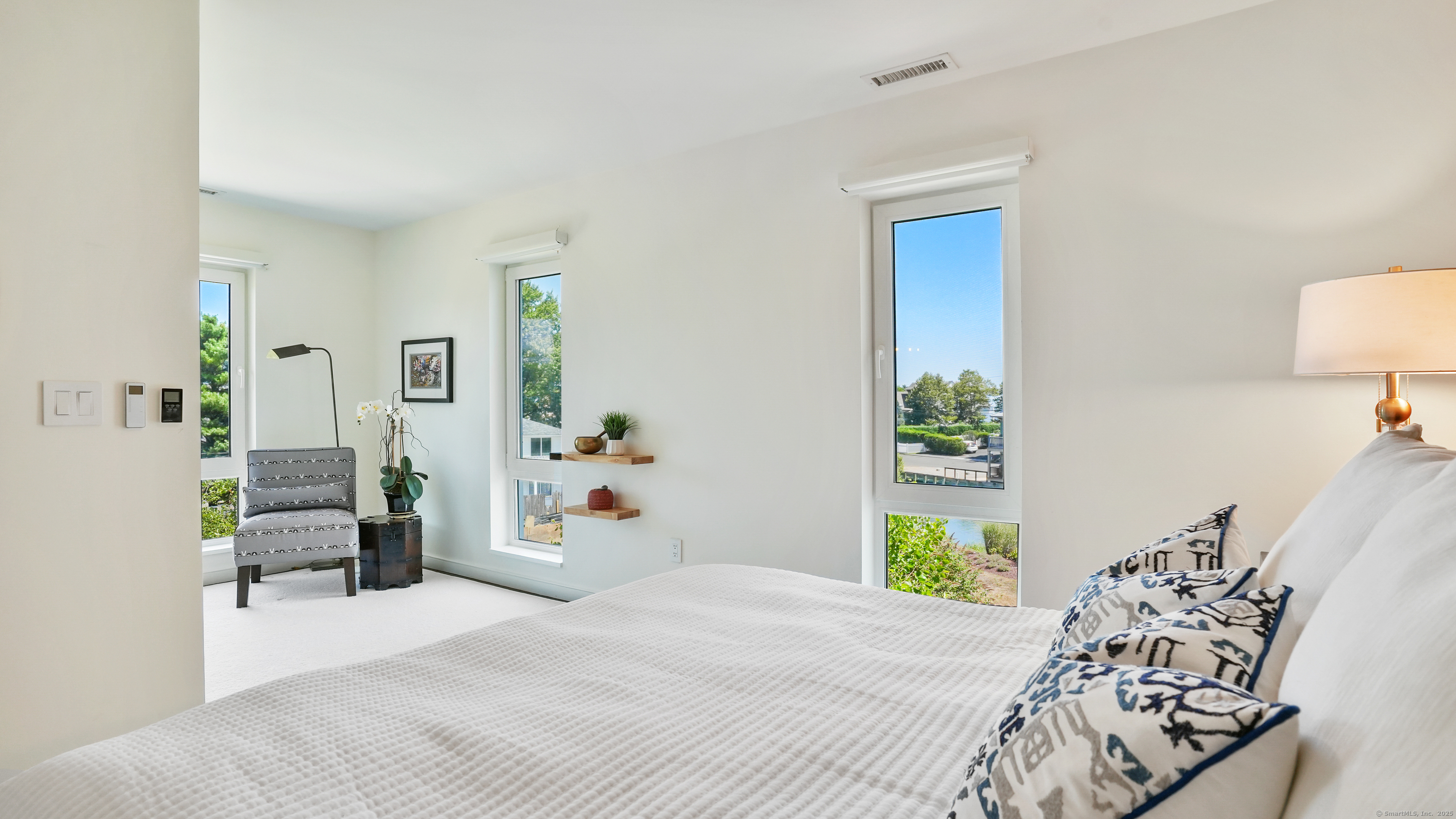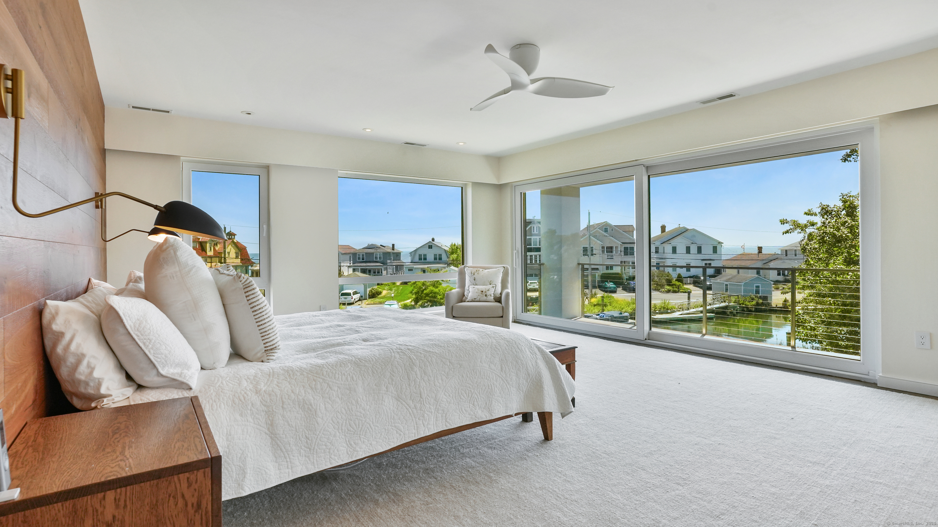 Extraordinary waterfront sanctuary offering unmatched privacy and expansive 1.5 acre property in Pine Creek Beach neighborhood. Net Zero, architecturally award-winning home stunningly designed with materials selected for visual appeal, efficiency, longevity. The striking open floorplan flows seamlessly from kitchen to living room and dining area, walls of floor to ceiling windows offer breathtaking vistas of the Pine Creek, Long Island Sound & salt marsh. The large private study with custom built-ins is adjacent to a full bath. Every room enjoys panoramic coastal views of the water and salt marsh. The 2nd level primary bedroom retreat offers sumptuous bath, 2 large walk-in closets, walls of windows and glass doors to a private balcony overlooking the waterfront and lush property. 2 additional bedrooms and office complete the space. The 3rd level offers a bonus room with more stunning coastal views, 2 bedrooms, bath and plenty of storage. Ground level has elevator, 3 car garage & storage loggia. Boating, kayaking, and paddleboarding are easily accessible from the home's private dock on Pine Creek out to LI Sound. Just across the creek is a private association dock and gated path to access a long sandy stretch of Fairfield beach. Walkable to beaches, par-3 golf course, and tennis facilities. Nature enthusiasts will enjoy exploring the area's abundant open space and walking trails, including paths leading to Pine Creek beach. All just minutes to vibrant Fairfield town center