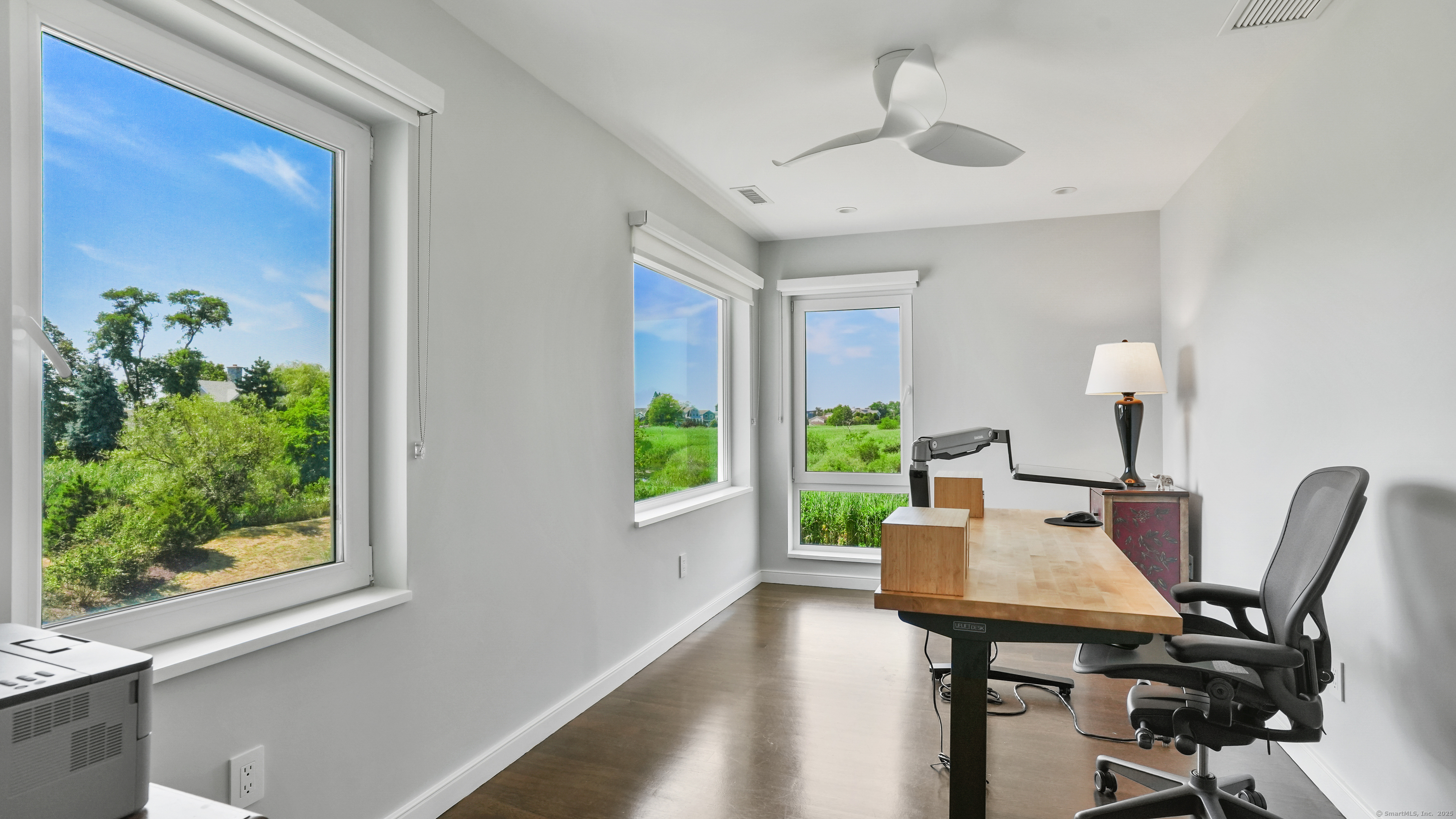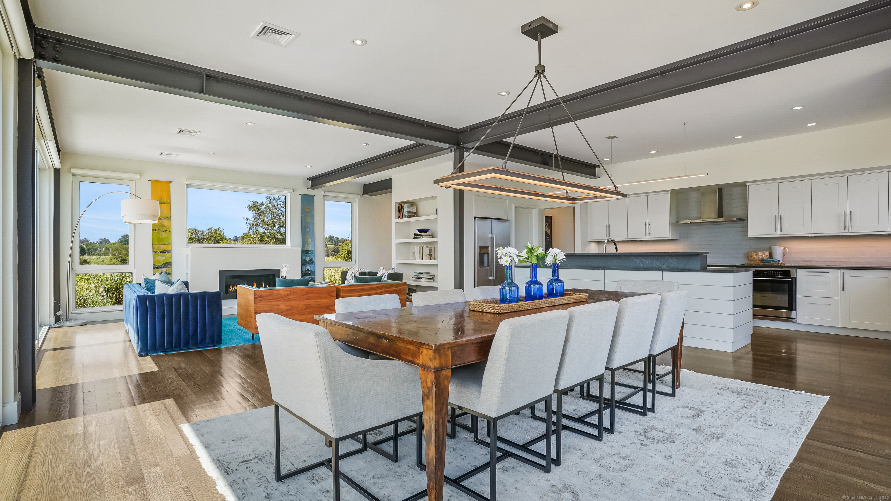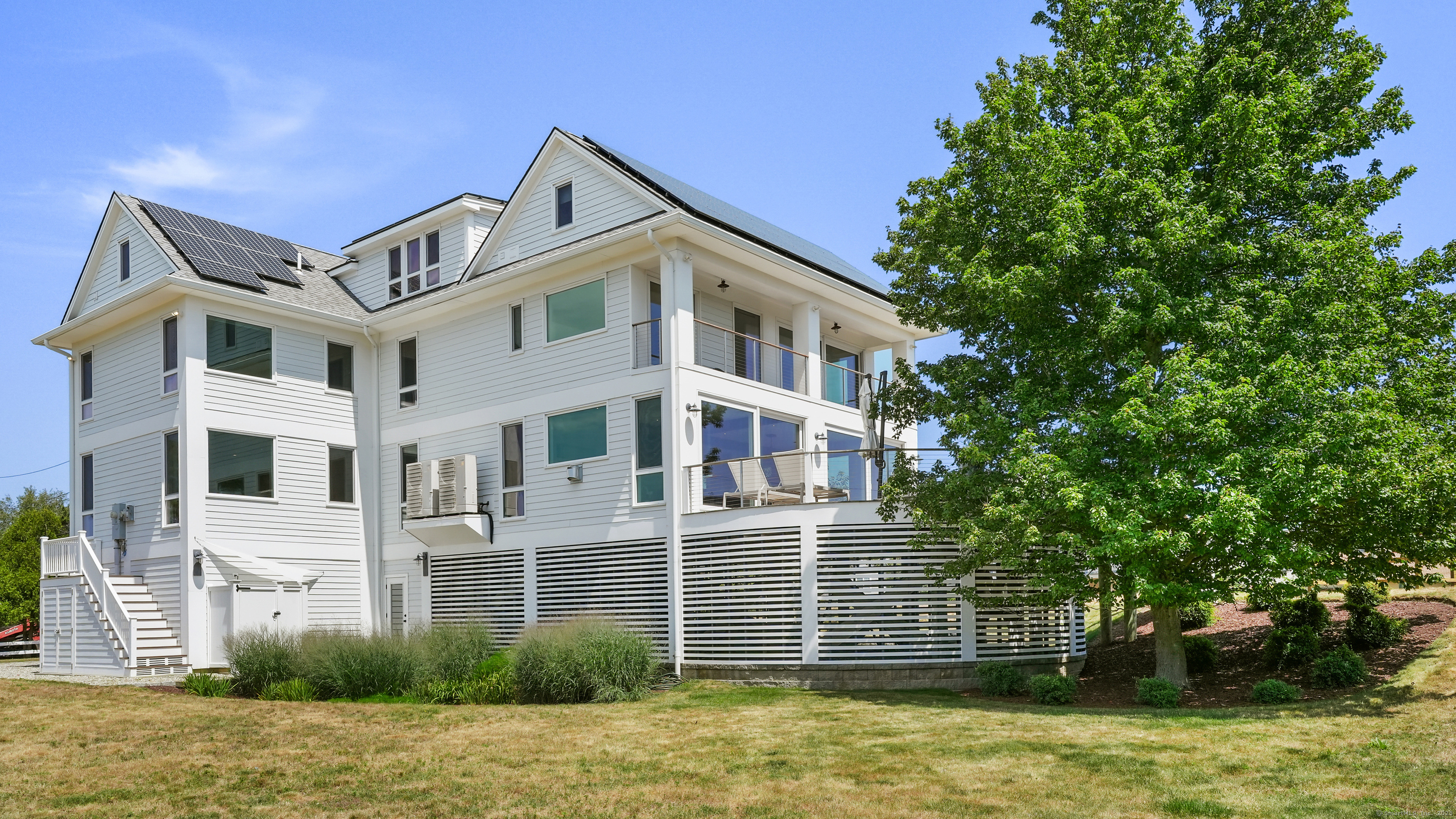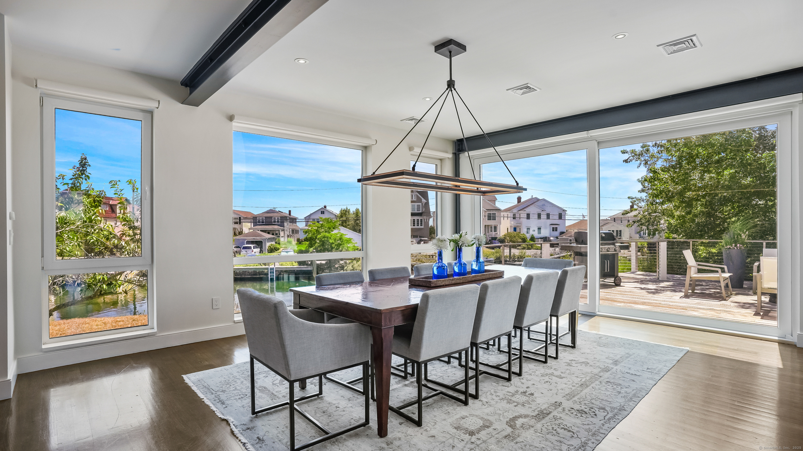 Extraordinary waterfront sanctuary offering unmatched privacy and expansive 1.5 acre property in Pine Creek Beach neighborhood. Net Zero, architecturally award-winning home stunningly designed with materials selected for visual appeal, efficiency, longevity. The striking open floorplan flows seamlessly from kitchen to living room and dining area, walls of floor to ceiling windows offer breathtaking vistas of the Pine Creek, Long Island Sound & salt marsh. The large private study with custom built-ins is adjacent to a full bath. Every room enjoys panoramic coastal views of the water and salt marsh. The 2nd level primary bedroom retreat offers sumptuous bath, 2 large walk-in closets, walls of windows and glass doors to a private balcony overlooking the waterfront and lush property. 2 additional bedrooms and office complete the space. The 3rd level offers a bonus room with more stunning coastal views, 2 bedrooms, bath and plenty of storage. Ground level has elevator, 3 car garage & storage loggia. Boating, kayaking, and paddleboarding are easily accessible from the home's private dock on Pine Creek out to LI Sound. Just across the creek is a private association dock and gated path to access a long sandy stretch of Fairfield beach. Walkable to beaches, par-3 golf course, and tennis facilities. Nature enthusiasts will enjoy exploring the area's abundant open space and walking trails, including paths leading to Pine Creek beach. All just minutes to vibrant Fairfield town center
