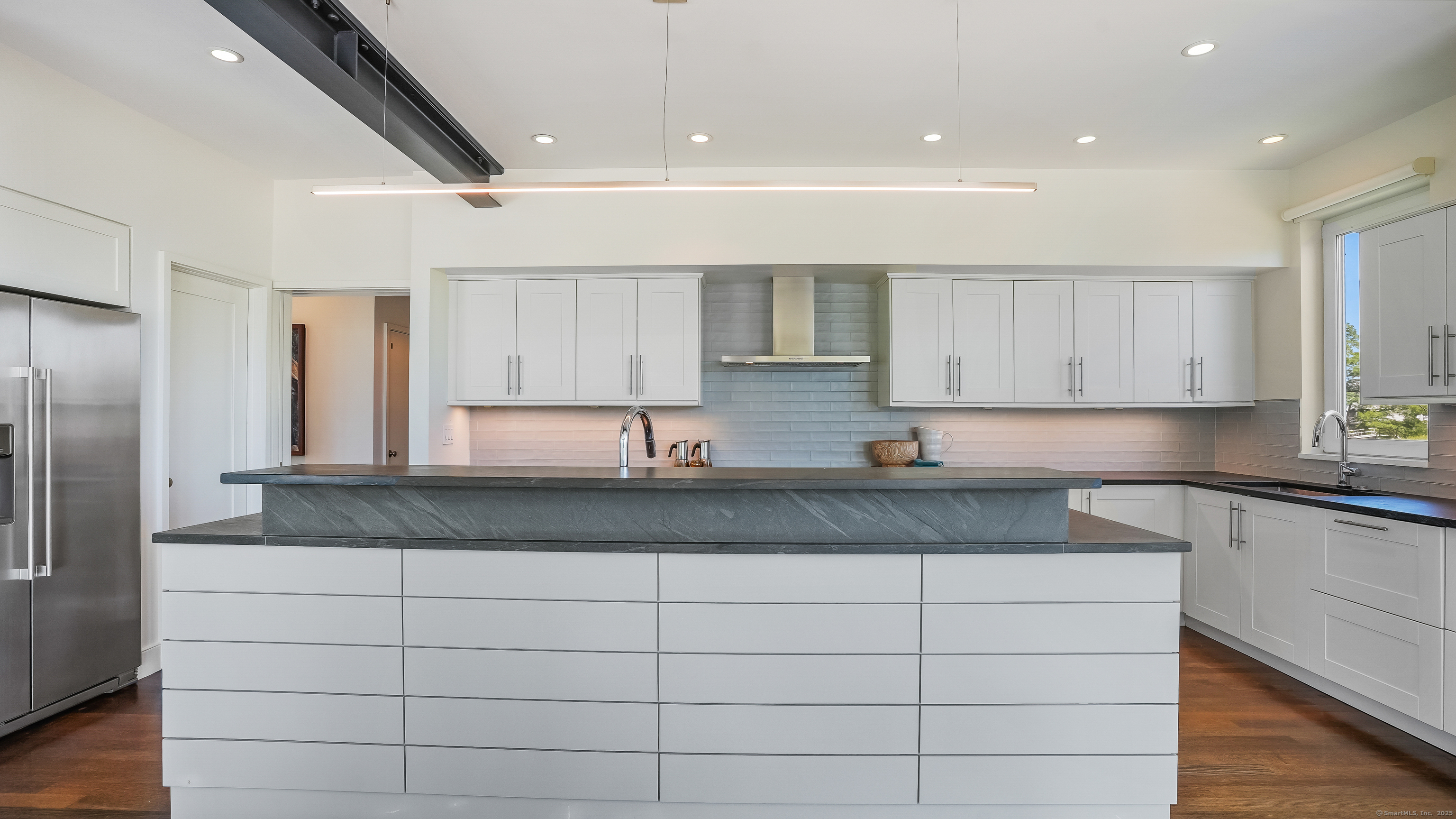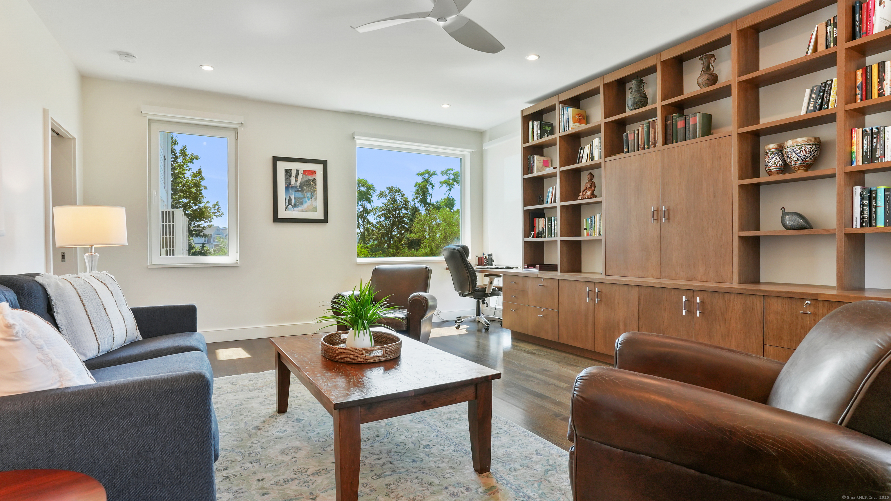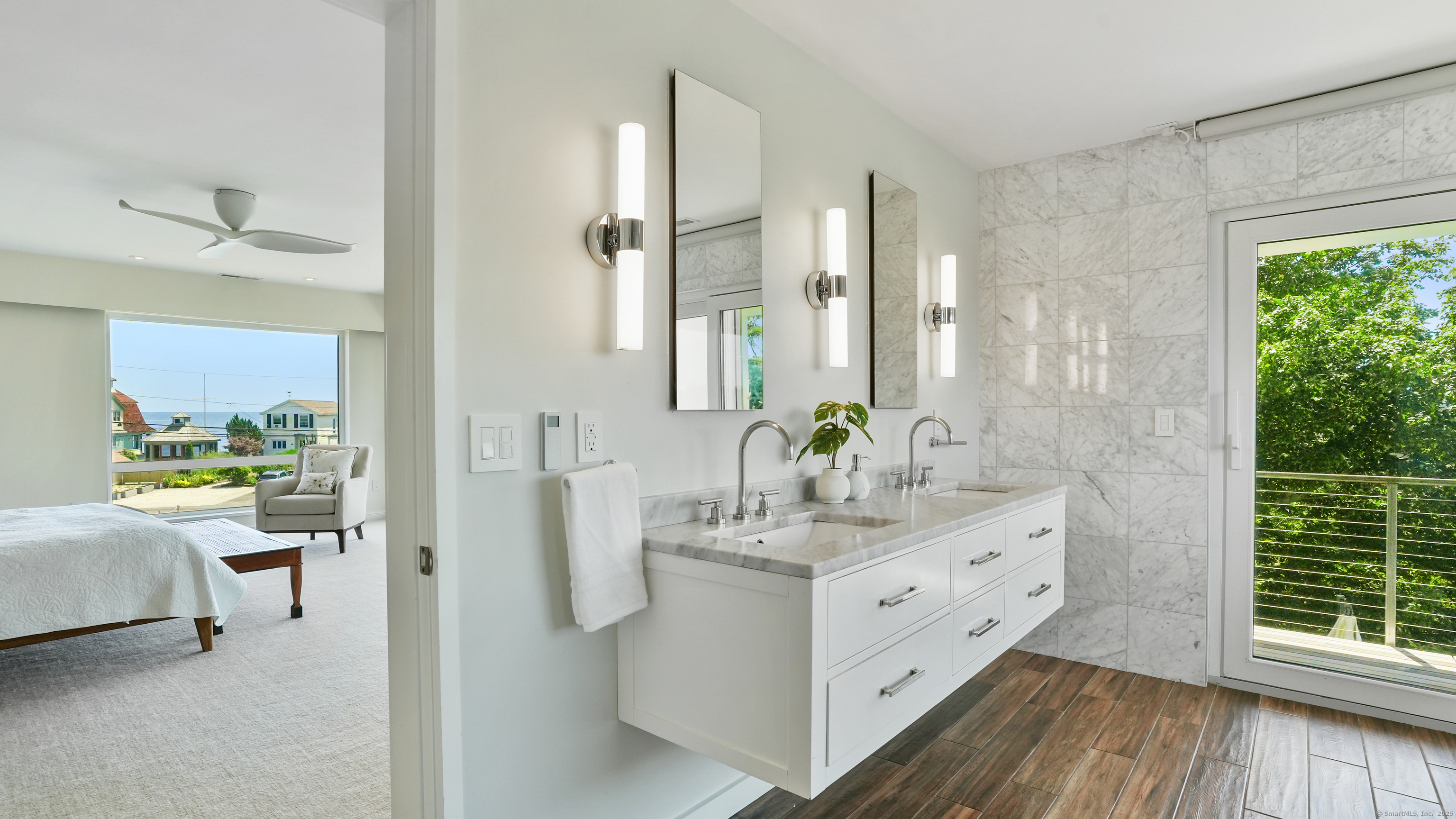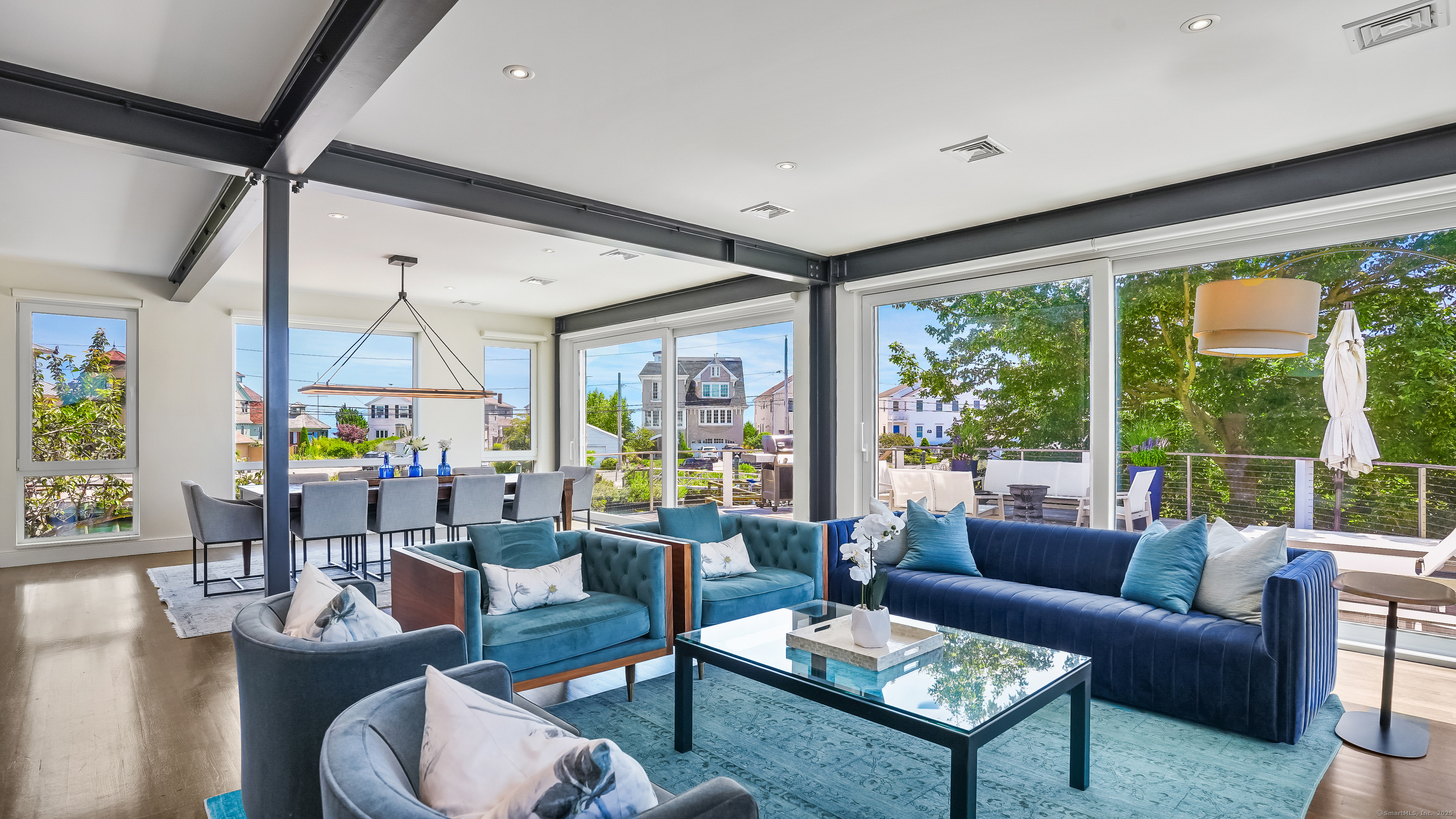 Extraordinary waterfront sanctuary offering unmatched privacy and expansive 1.5 acre property in Pine Creek Beach neighborhood. Net Zero, architecturally award-winning home stunningly designed with materials selected for visual appeal, efficiency, longevity. The striking open floorplan flows seamlessly from kitchen to living room and dining area, walls of floor to ceiling windows offer breathtaking vistas of the Pine Creek, Long Island Sound & salt marsh. The large private study with custom built-ins is adjacent to a full bath. Every room enjoys panoramic coastal views of the water and salt marsh. The 2nd level primary bedroom retreat offers sumptuous bath, 2 large walk-in closets, walls of windows and glass doors to a private balcony overlooking the waterfront and lush property. 2 additional bedrooms and office complete the space. The 3rd level offers a bonus room with more stunning coastal views, 2 bedrooms, bath and plenty of storage. Ground level has elevator, 3 car garage & storage loggia. Boating, kayaking, and paddleboarding are easily accessible from the home's private dock on Pine Creek out to LI Sound. Just across the creek is a private association dock and gated path to access a long sandy stretch of Fairfield beach. Walkable to beaches, par-3 golf course, and tennis facilities. Nature enthusiasts will enjoy exploring the area's abundant open space and walking trails, including paths leading to Pine Creek beach. All just minutes to vibrant Fairfield town center